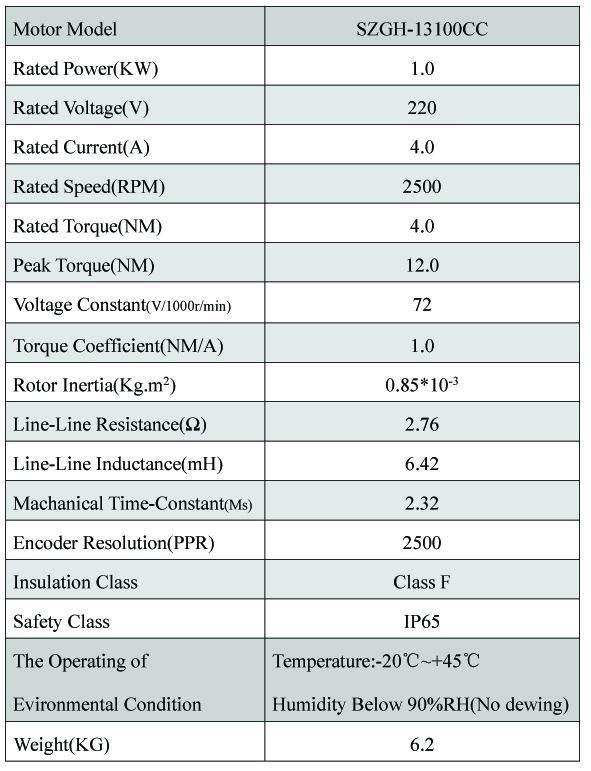 GH-13100CC is 1KW ,4NM and 2500RPM servo motor, it is low cost , and very general-purpose type. Imported feedback components, original imported low-noise motor.